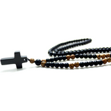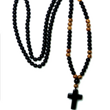 This beautiful Rosary necklace is the perfect way to do that! Made with black stone and wood beads, it's a stunning and very meaningful piece.