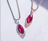 Charms 9x29MM Rose Gold Color Red Ruby Pendant Necklaces for Women Silver 925 Jewelry Necklace