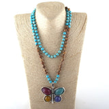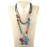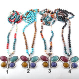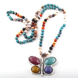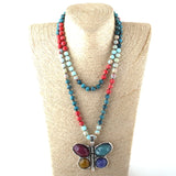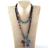 108 Beads Mala Multi Stone Knotted Butterfly Charm Pendant Necklace For Women Meditation Yoga Necklace