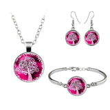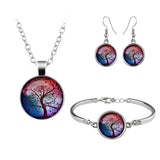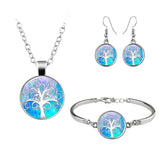 Classic Tree Of Life Jewelry Set Cute Trees Drawing Picture Glass Dome Necklace Bracelet Earrings For Women