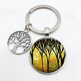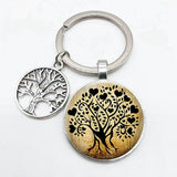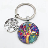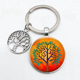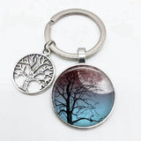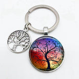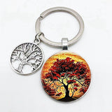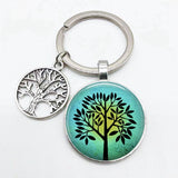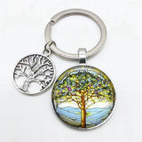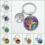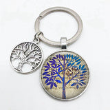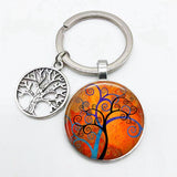 Super Art Tree of Life Keychain Tree Pattern Round Glass Key Chain Tree of Life Pendant Key Chain