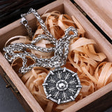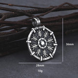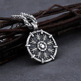 Vintage Stainless Steel Viking Rune Compass Necklace for Men