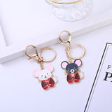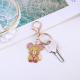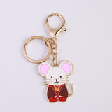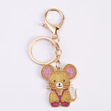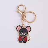Cute Lucky 12 Zodiac Mouse Keychain Crystal Enamel Handbag Charms Rat Animal Keyrings